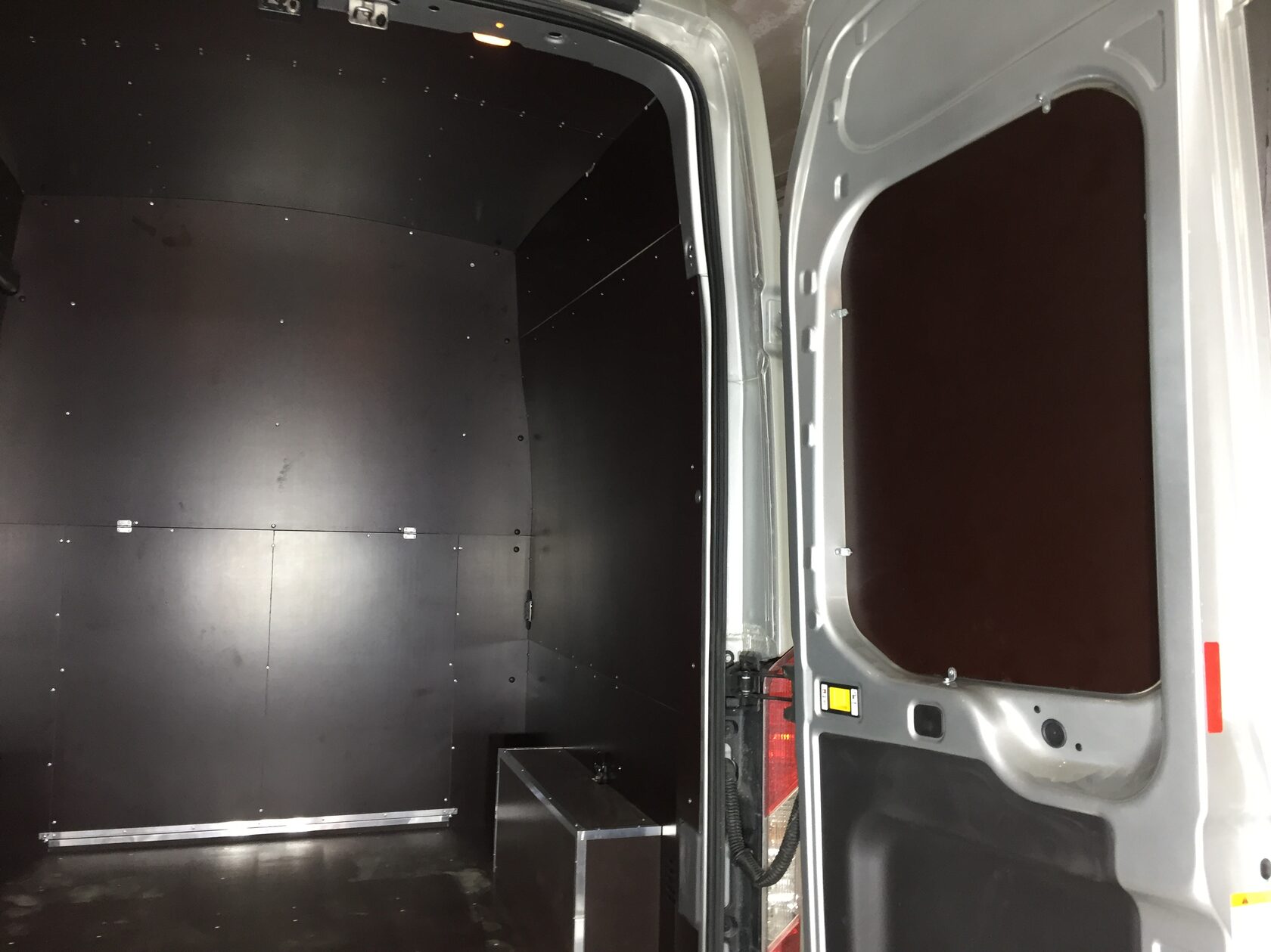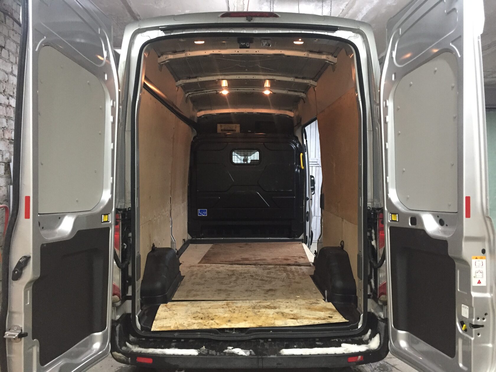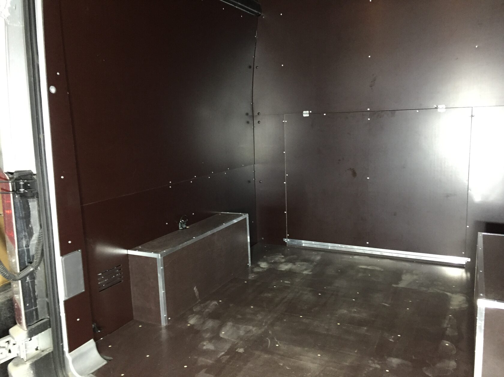 обшивка грузовой части ламинированной фанерой (стены, двери, потолок, перегородка - 6мм, пол и арки - 12мм)