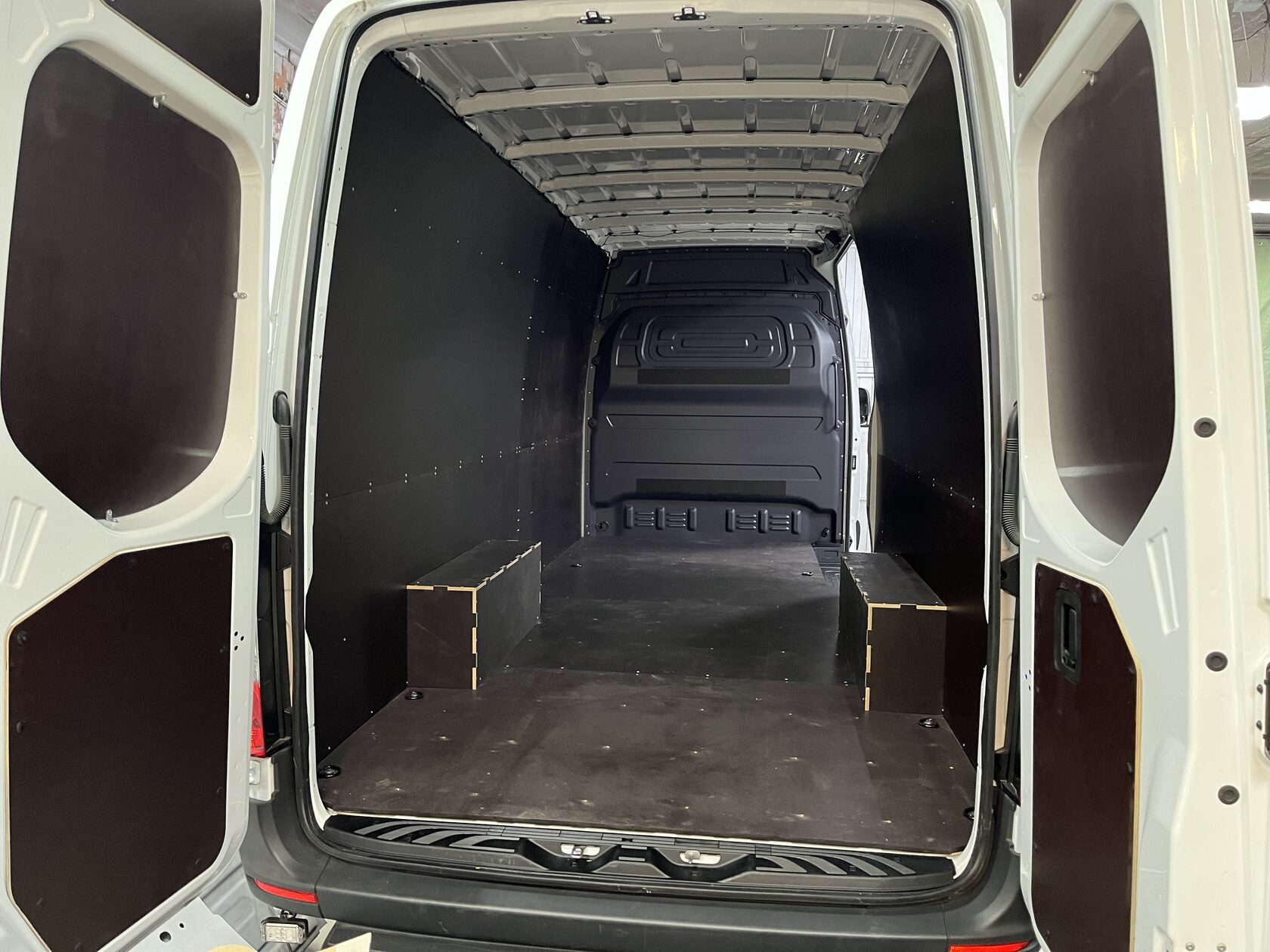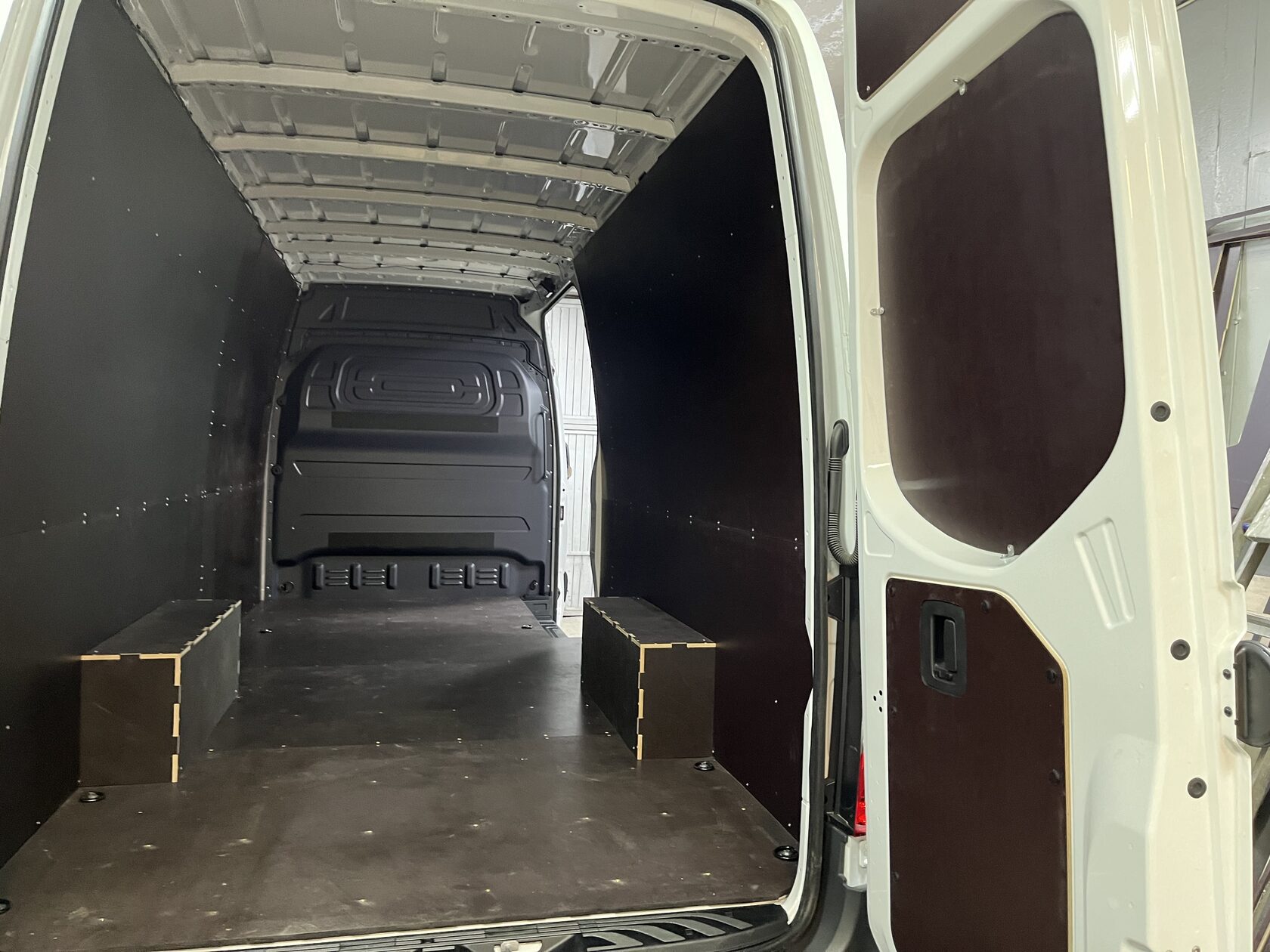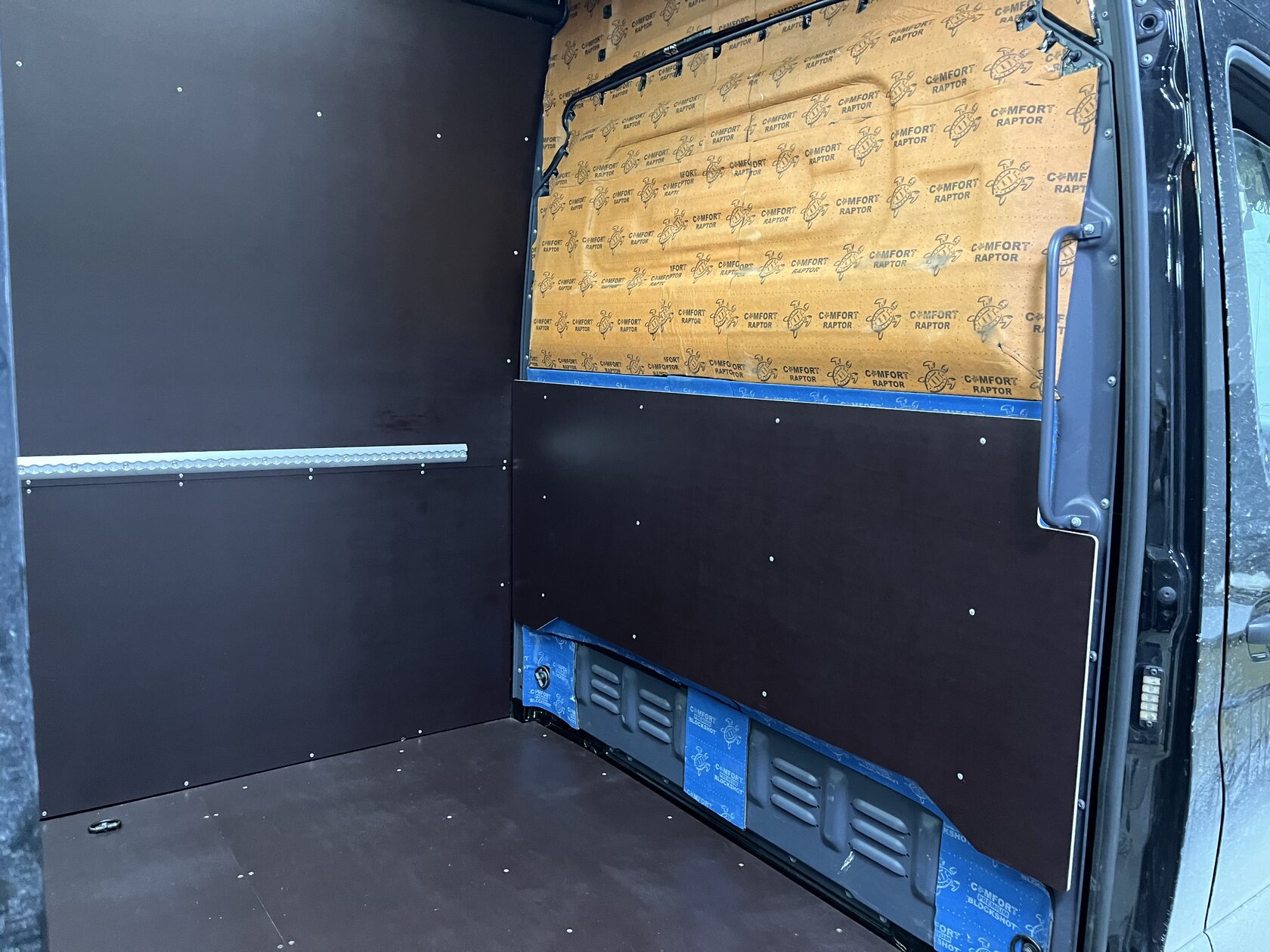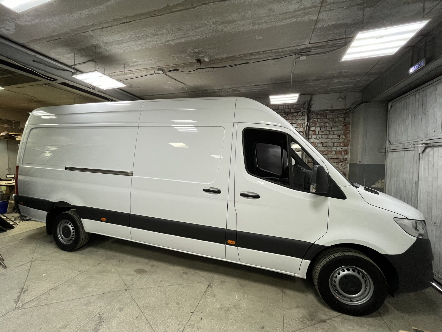 Выполнили работу по обшивке кузова Мерседес Спринтер фанерой. Полл и арки - ламинированная фанера 12мм, стены, двери, перегородка - ламинированная фанера 6мм.